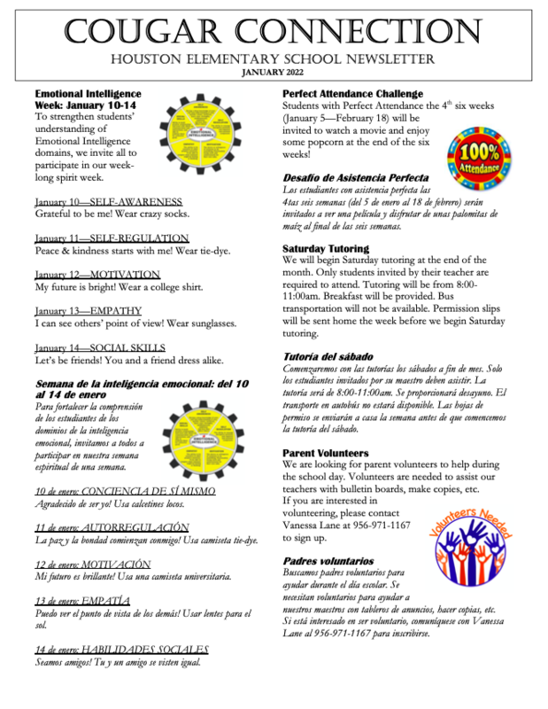 Cougar Connection - Houston Elementary School Newsletter: Jan. 2022